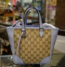 GUCCI 手袋449241KY9LG8611淺藍色皮帆布斜背袋