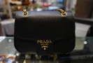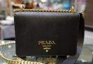 PRADA 手袋1BD194黑色十字紋牛皮鏈包Saffiano