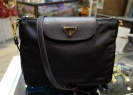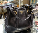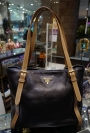 Prada 手袋 1BG064 黑色鹿皮啡色手挽袋