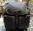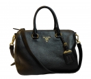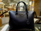 Prada 手袋 1BB903 黑色綾格拉鏈雙挽