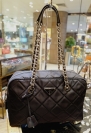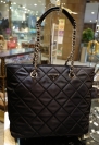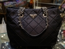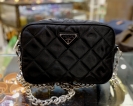 Prada 手袋 1BG740 黑色綾格銀色鏈雙挽