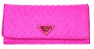 PRADA 1m1183桃紅菱格牛皮壓紋長銀包
