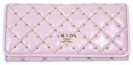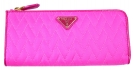 PRADA 1m1132桃紅菱格牛皮壓紋皮長銀包