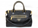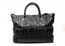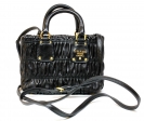 PRADA BN1232 黑色小羊皮縐摺牛皮手挽
