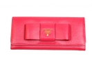 PRADA 1m1132 桃紅大蝴蝶結牛皮壓紋皮長銀包