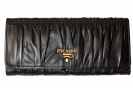 PRADA 1M1132 黑色小羊皮縐摺長銀包