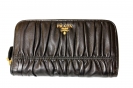 PRADA 1M0506黑色小羊皮縐摺大拉鏈長銀包