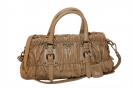 PRADA BN1407杏色羊皮縐摺手挽側背