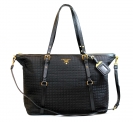 PRADA B4259M黑色絹料織花LOGO牛皮手挽及斜背