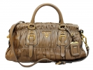 PRADA BN1407深卡其羊皮縐摺手挽側背