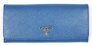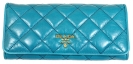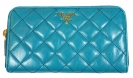 PRADA 1m1132藍色色菱格羊皮長銀包