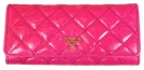 PRADA 1m1132桃紅菱格羊皮長銀包