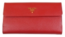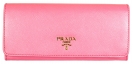 PRADA 1m1132粉紅牛皮壓紋皮長銀包