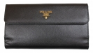 PRADA 1M1132海軍藍色牛皮壓紋皮長銀包