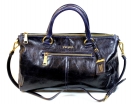PRADA BL0639深藍色水牛皮拉鏈手挽及側背橫向手袋