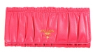 PRADA 1M1132粉紅色小羊皮縐摺長銀包