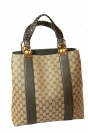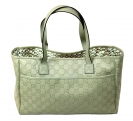 GUCCI 綠色織皮雙手挽帆布SHOPPING BAG