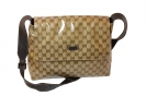 GUCCI 手袋449241KY9LG8610卡其色皮帆布斜背袋