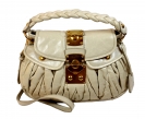 MiuMiu RR1358 Coffer米色牛皮縐摺金屬扣(Hit爆全城)