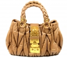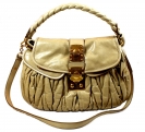 MiuMiu RR1300 Coffer米杏色牛皮縐摺金屬扣(Hit爆全城)