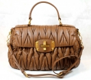 MiuMiu RN0662深啡羊皮縐摺十字扣手挽可斜背