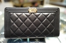 CHANEL 銀包BOY A80285黑色牛皮金扣