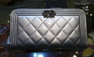 CHANEL 銀包BOY A68910銀色漆皮銀扣大拉鏈