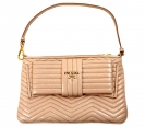 PRADA 1M1586蝴蝶結杏色波浪紋小手挽