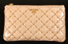 PRADA 1M1414 杏色金珠羊皮化妝袋
